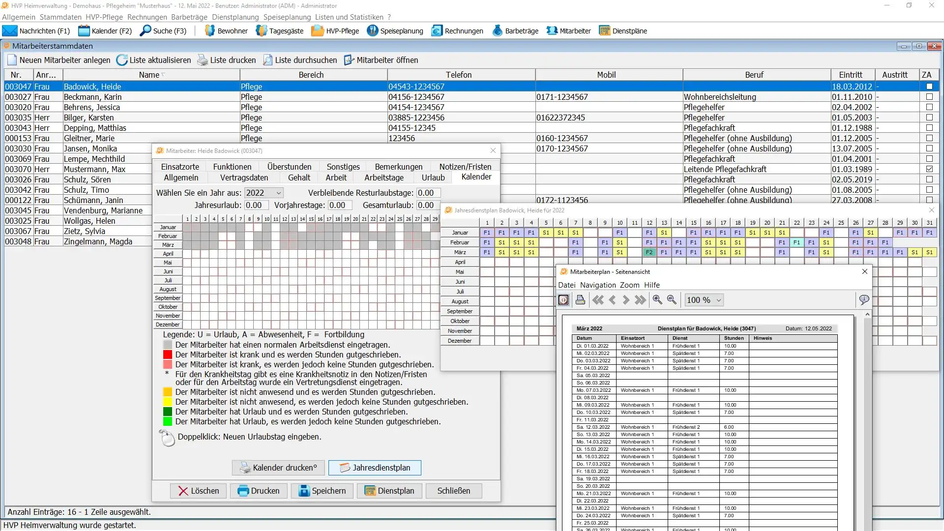 - Listen zu Kontaktinformationen, Geburtstagen, Gehalt, Fristen, Abwesenheiten, Zusatzqualifikationen, etc.
