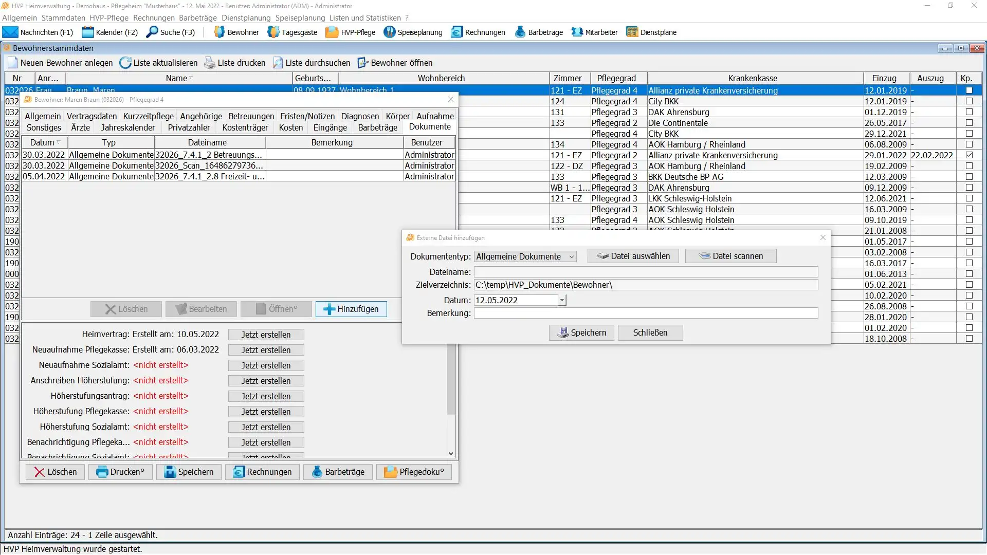 In den Bewohner- oder Mitarbeiterstammdaten können beliebige Dokumente hinterlegt werden.